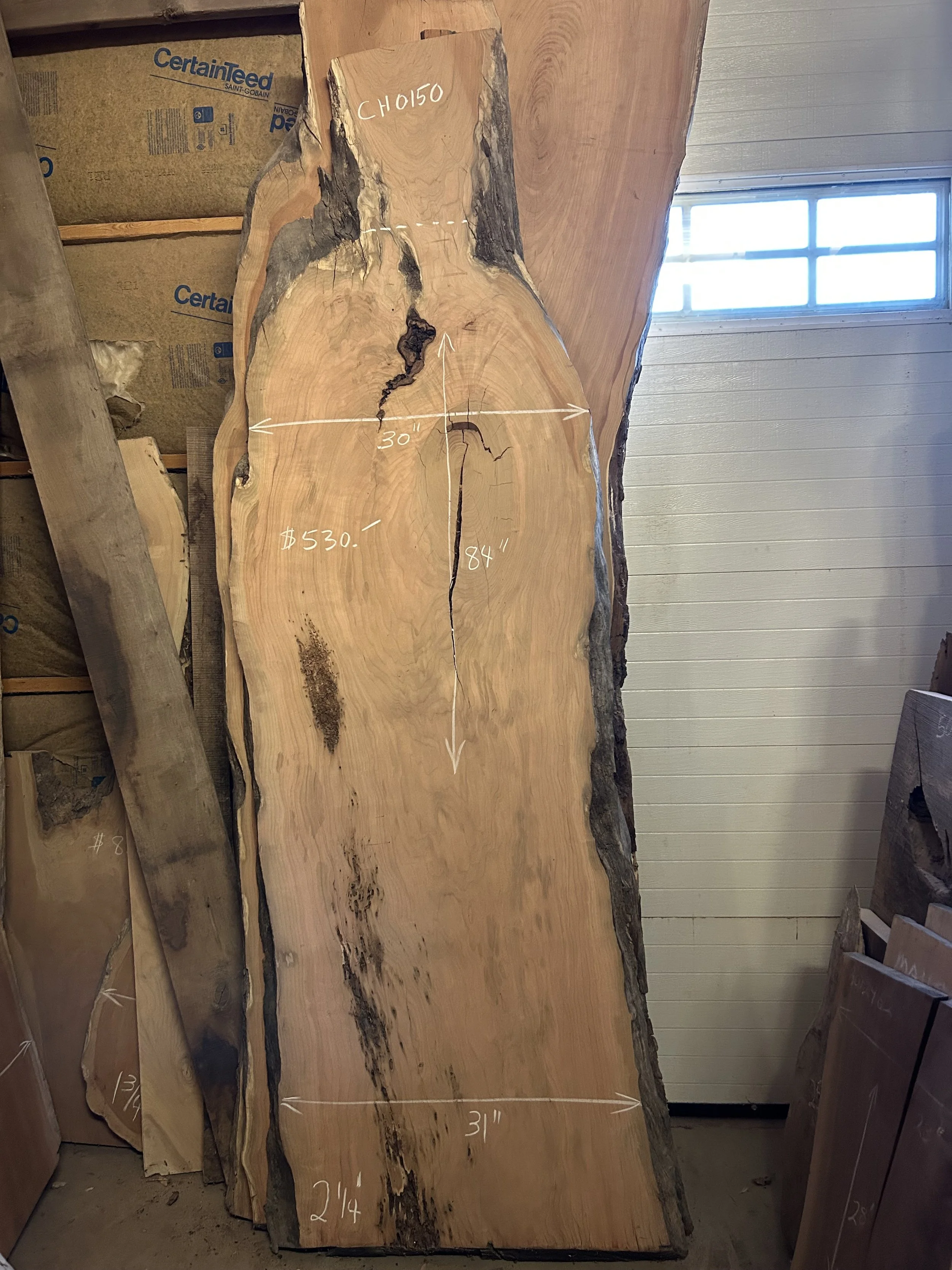 Black Cherry (Prunus serotina) also known as American Cherry or Wild Cherry has a pinkish heartwood when freshly cut then turns to a deeper golden brown with a reddish hew, sapwood is yellowish. The heartwood turns darker when exposed to sunlight. Typically straight grain and easy to work, with tight grain fine texture, with the exception of figured pieces with curly grain. Rated very durable and resistant to decay. Black Cherry is known as a very workable wood and is preferred for it's ease of machining, cutting and sanding. Glues, stains, and finishes with ease, has a mild but distinct odor. Black Cherry is preferred by many craftsmen for kitchen cabinets, wall units, clocks, fine furniture, interior paneling, veneers, and turnings.